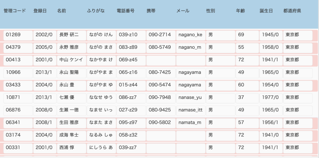 年齢が50歳以上の時にレコードの背景をピンクにする方法